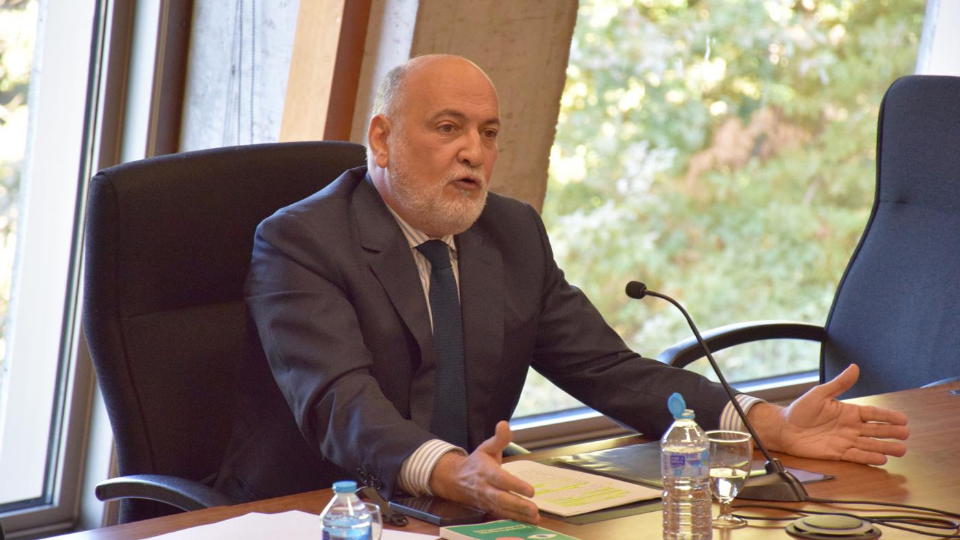 A intervención de Pérez de los Cobos xirou arredor da relación de Kafka co dereito, prestando especial atención á análise xurídica de A metamorfose. O evento arrancou coas intervencións de Francisco Torres, decano da Facultade de Ciencias Xurídicas e do Traballo; Antonio Collazo, director da Escola Internacional de Doutoramento da UVigo e Pablo Raúl Bonorino, coordinador do Programa de Doutoramento, que foron os encargados de dar a benvida aos poñentes e asistentes que ateigaron o salón de graos da facultade e de presentar as novas liñas de investigación do programa.