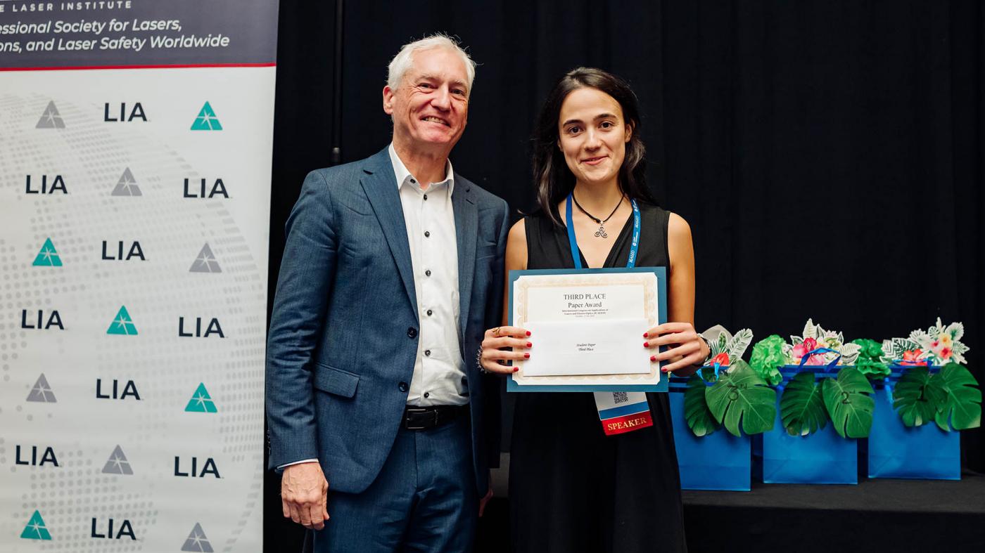 Ana María Vilas Iglesias, enxeñeira industrial, estudante de doutoramento na Escola de Enxeñaría Industrial e investigadora do grupo LaserON do centro de investigación Cintecx da Universidade de Vigo, foi galardoada co terceiro premio do Laser Institute of America á mellor comunicación presentada na 44th International Conference on the Applications of Lasers and Electro-Optics, a maior do mundo no campo do procesamento de materiais láser, celebrada recentemente en Orlando, Florida, EUA.